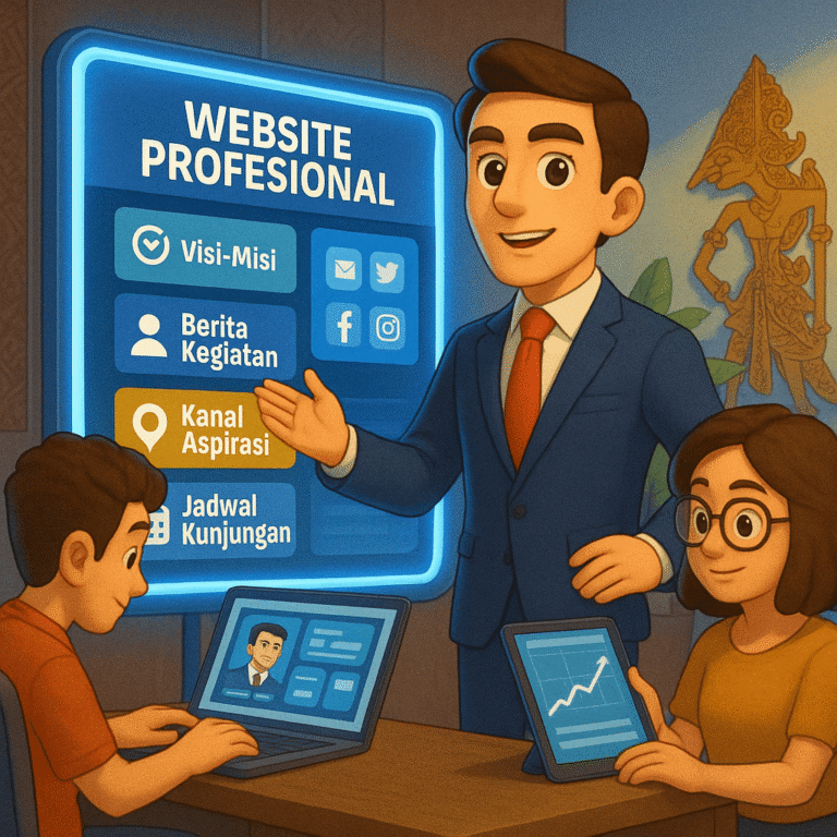 Politik Modern Dimulai dari Digitalisasi Bersuara Online, Berdampak Offline! Portofolio Web Portofolio Video Profesionalisme Kepercayaan dibangun dari komitmen dan ketepatan. Pembayaran 100% Aman Pembayaran Anda aman bersama kami. Siap Membantu 24/7 Bantuan langsung dari tim Customer kami via WhatsApp. Tetap ngebut Waktu loading website tetap ngebut meski traffic kunjungan sedang tinggi. Desain Eksklusif & Profesional Tampilan elegan, fungsional, dan mencerminkan identitas brand Anda. Fitur Interaktif Tampilan yang responsif, dinamis, dan mudah digunakan. Mobile Friendly Tampil optimal di semua ukuran layar, mulai dari smartphone hingga tablet. Up Time 99% Website selalu online dengan jaminan uptime 99,9%. #1 Jasa Pembuatan Website Saatnya Punya Website Profesional — Mulai Rp 1 Juta! #2 Jasa Maintenance Website Maintenance Website Rutin Mulai dari Rp 300 Ribuan! #3 Jasa Pembuatan Video Animasi 3D Keren & Realistik, Mulai Rp 3 Jutaan! #4 Jasa kustomisasi website Kustom Website Impianmu Mulai Rp 1 Juta Saja! Paket POWERFUL Website + Maintenance! Dengan paket PowerFul dari kami, Anda tak perlu lagi pusing rekrut tim IT untuk urus website. Kami yang bangun, kami juga yang rawat! Detail Paket Watch Video Politik Digital Solusi Digital Khusus untuk Politisi, Partai Politik, dan Calon Kepala Daerah yang Ingin Tampil Unggul di Era Digital. Hemat lebih banyak Dengan kontrak jangka panjang! Kami beri diskon 10% khusus untuk kontrak 5 tahun. Pesan Sekarang Ratusan Template Kami menyediakan ratusan template website yang dirancang profesional dan siap pakai, tanpa batasan, tanpa repot. Learn More Gratis Hosting & Domain Nikmati kemudahan memiliki website tanpa ribet. Termasuk domain dan hosting gratis dalam setiap paket yang Anda pilih. Learn More Support SEO Dukungan SEO kami membantu website Anda lebih mudah ditemukan calon pelanggan di Google. Learn More Informasi Terbaru Digitalisasi politik bukan sekadar tren, ini masa depan!Cari tahu bagaimana teknologi membentuk ulang partisipasi publik, transparansi, dan sistem demokrasi kita. Lihat Semua Anggota Dewan Harus Punya Website, Ini Alasannya!Baca Selengkapnya...Anggota Dewan Harus Punya Website, Ini Alasannya!Politikus Modern? Mulailah dari Website yang ProfesionalBaca Selengkapnya...Politikus Modern? Mulailah dari Website yang ProfesionalManfaat Website di Era Sekarang untuk Partai Politik di DaerahBaca Selengkapnya...Manfaat Website di Era Sekarang untuk Partai Politik di Daerah Jangan Lewatkan Berita Kami Please enable JavaScript in your browser to complete this form.Please enable JavaScript in your browser to complete this form.Email *SUBSCRIBE